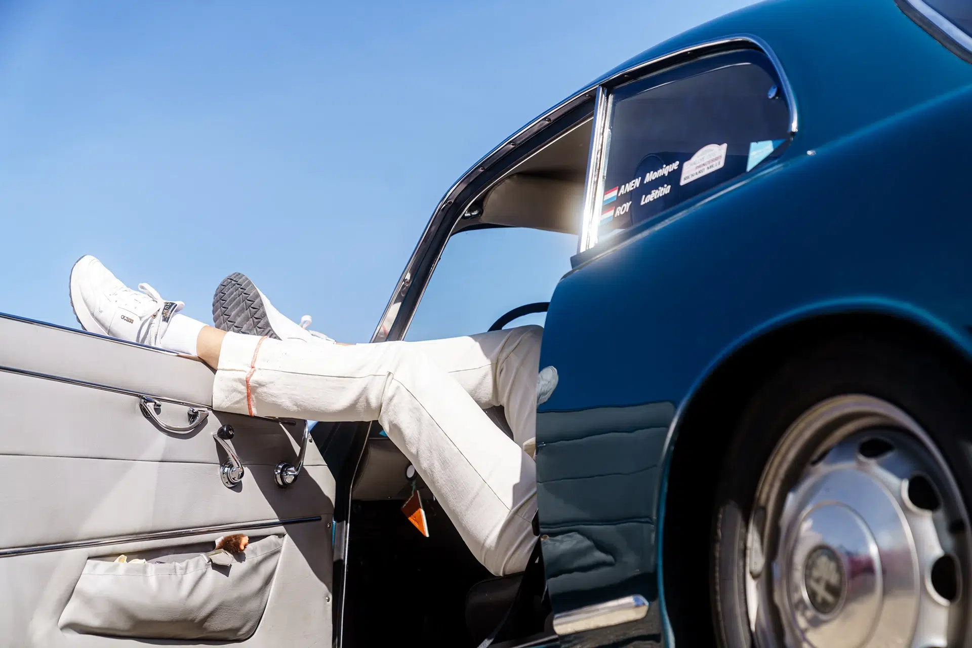 Parfois, un simple détail raconte tout : un éclat de carrosserie sous le soleil, un geste complice, ou une paire de jambes étendues sur le rebord d’une portière, en quête de repos entre deux étapes.