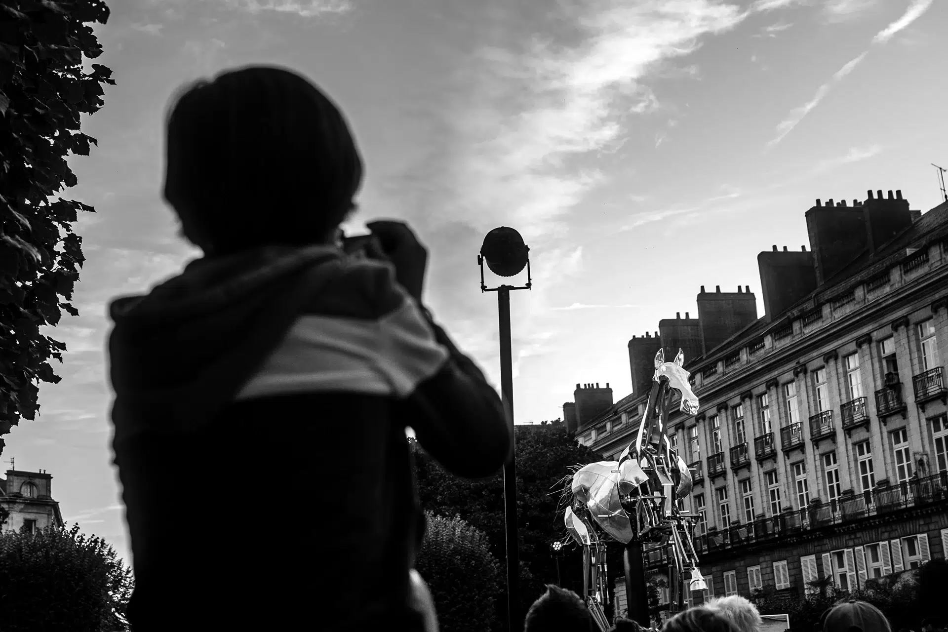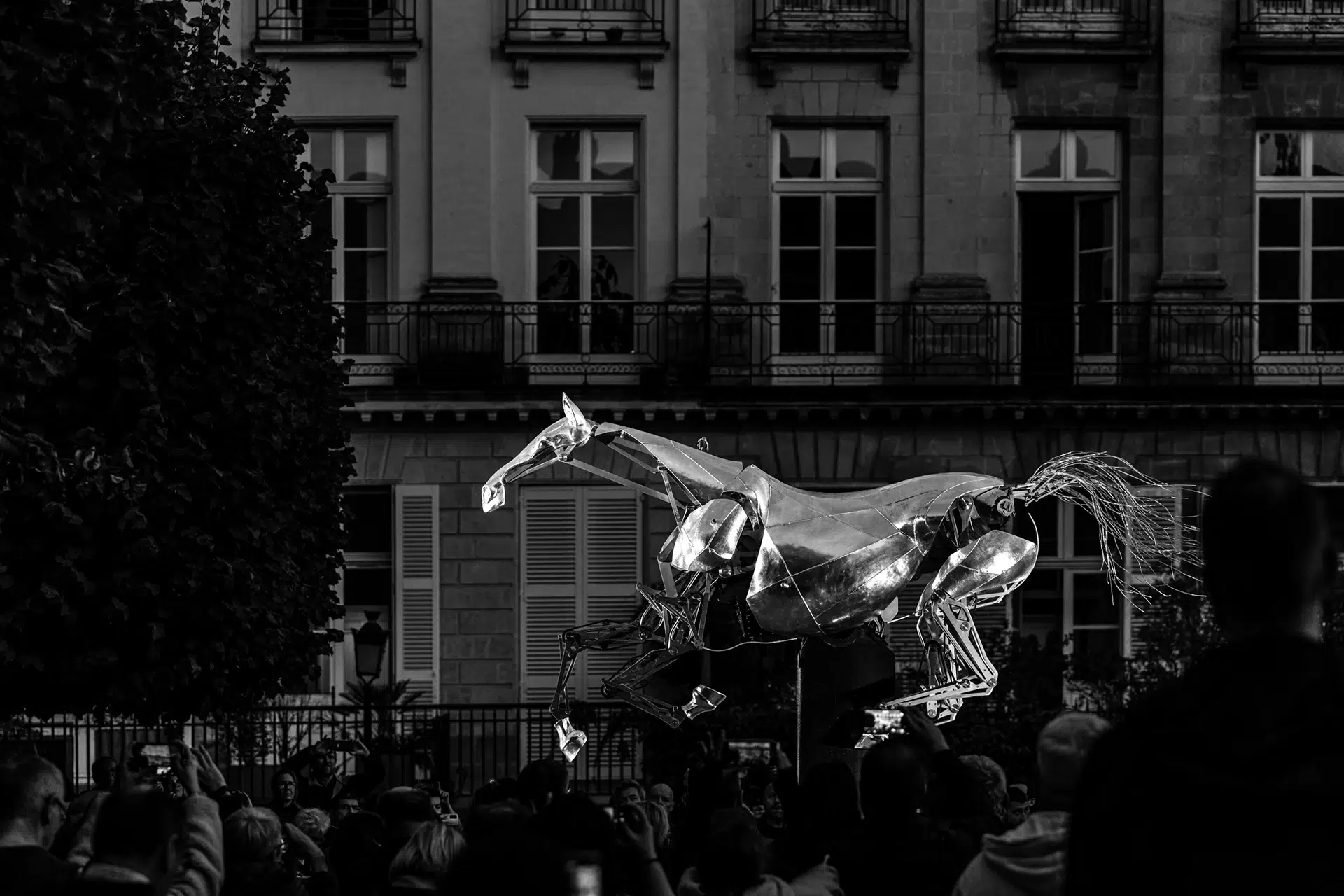 J’ai capté cette installation au cœur de la ville, entre curiosité des Nantais, jeux de lumière et atmosphère unique autour de cette création emblématique.