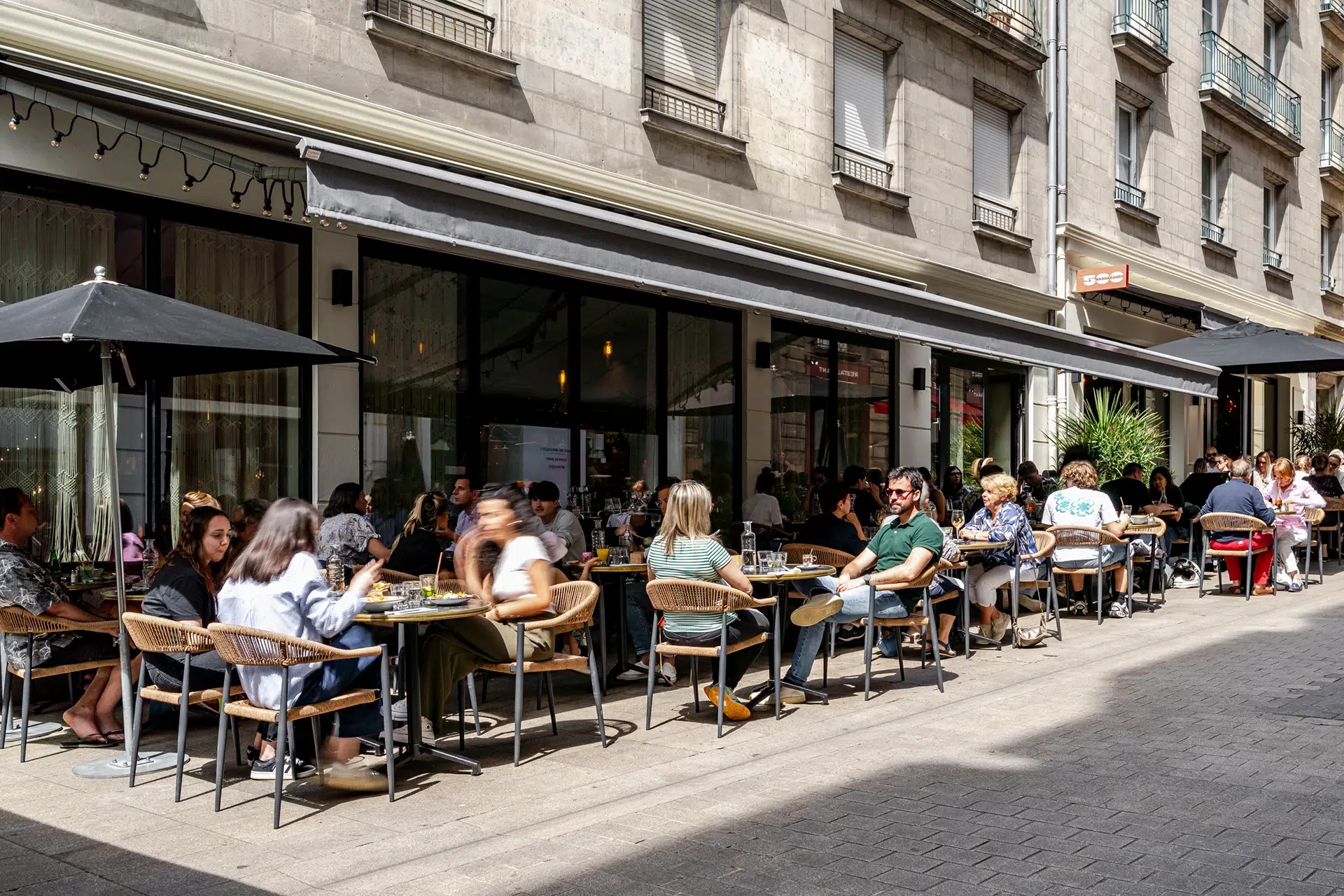 J’ai accompagné Espacio, spécialiste de l’installation de stores et bannes pour les professionnels, sur un projet réalisé pour le restaurant La 500 à Nantes.